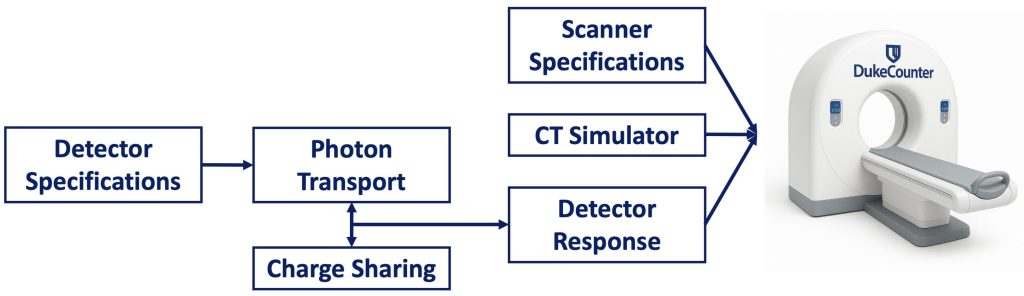 Developing a validated, customizable framework for photon-counting CT that enables efficient large-scale synthetic multi-energy data generation across detector materials, geometries, and acquisition protocols for developmental, pre-clinical, and clinical scanners.
